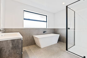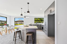 The home speaks quality from the electric entry lock, drive through garage, second lounge with bulkhead ceiling, feature lighting, tiled ensuite shower, separate laundry, plenty of extra storage and a Fujitsu Heat Pump for those cooler winter months. The emphasis on black accents for the fittings give a strong modern feel.