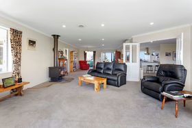 Inside, this delightful home boasts four bedrooms (master with walk-in-robe) and two bathrooms, including an ensuite off the main bedroom. Most rooms are super-sized, with the lounge being very spacious and boasting amazing mountain views. Thoughtfully configured living and dining spaces complement the kitchen, while the neutral decor ensures the new owners will have no trouble expressing their own sense of style and personality. Warmth is provided by two heat pumps, large wood burner, HRV systems and double glazing.