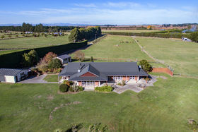 The home sits on a private elevated site on the 30 acre parcel and has a double garage with workshop, and a second double garage. The block is well fenced, has mature shelter belts and trees, a 790m trotting track, 12x12 Totalspan barn with dry boxes, two 2-bay sheds and various shelters. Grassy paddocks provide the opportunity to graze all animals. With the land size available here, further unrealised potential is high.