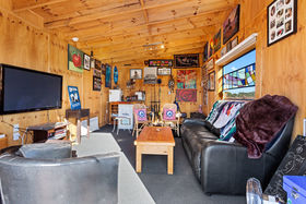 This beautifully designed three bedroom, two bathroom home is near new. One wing contains the master bedroom with an ensuite and walk in wardrobe. Another wing has two bedrooms and the main bathroom. There are two living area's with an open plan kitchen living and a separate lounge. The log-burner has a wetback and there is a heat pump as well. A Belling stove and AEG dishwasher are typical of the quality of the chattels and fit out. The garage is a large single with an adjoining separate laundry and mudroom. Extra accommodation is available in the one bedroom flat adjoining the shed, which has a kitchen/ living area and a good bathroom and is approximately 45m2. The shed itself is approximately 150m2 with a commercial roller door and clear span, high stud steel trusses. It has three phase power and excellent lighting. The 24m2 studio is transportable, so could be sold separately if not wanted.