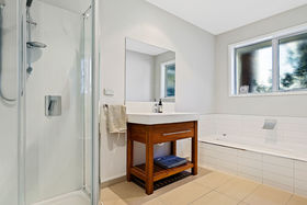 The delightful separate two bedroom cottage has its own access and shares the wonderful outlook that the main residence enjoys. It is well heated with a woodburner and a heat pump. Presently tenanted although using this home for guests or family could appeal.