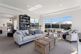 Ample accommodation is provided by four good-sized bedrooms, while two luxurious bathrooms (including an ensuite off the master) and an appropriately lavish kitchen with walk-in pantry enhance functionality. The open-plan dining/living area is complemented by a separate formal lounge, with a heatpump promising year-round comfort and effortless indoor/outdoor flow offering easy access outside.