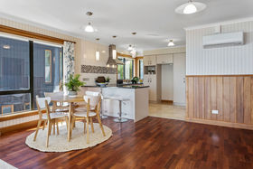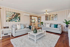 The open plan living and dining area enjoys magnificent views through large windows. The separate lounge has access to a north facing deck through a ranch slider. The deck is ideally suited to hosting friends and family all year round with the benefit of electric louvres to provide shade and shelter as needed.
