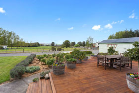 Attractive 24 acre block with productive soils and a well maintained villa, the original part of which is 120 years old. The house is approximately 272m2 including the verandah, which is a feature. It comprises three good size bedrooms, large open plan area with Wellstood multi fuel burner, with wet-back, as well as a separate lounge with a large Metro wood burner. The kitchen is quite modern being done in 2007. Features include two toilets, a laundry, HRV, decorative fireplaces in each bedroom and wooden joinery. The detached car garage is 75m2 and includes a sleep-out and woodshed. The sheds are large with one being 345m2 with a high stud and partly lockable with a concrete floor. There is a lean-to on the end approximately 5m x 3.5m. The woolshed is 196m2 with a 63m2 shed attached. The property is very appealing with the tree lined drive, a number of large trees and two woodlots, a pond fruit trees and a good garden, hen house and greenhouse.
