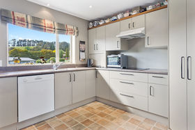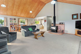 On offer is an elevated spacious home comprising open-plan kitchen, dining and living space opening to an expansive north facing deck. The cathedral style ceilings give a great sense of space and it is heated in winter via a log burner. Three bedrooms all with wardrobes, dedicated office, plus a family bathroom complete the home. Hot water is powered by solar heating to the home. The internal access garage is also home to the laundry and has the bonus of storage in the ceiling.