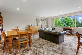 Expansive grounds with established trees, shrubs and lawn, perfect for children to run and play. There is a large patio area and service space.