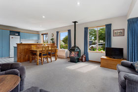 From the entrance you are welcomed into the open plan kitchen, dining and living space - all enjoying vistas over the stunning gardens. This area is serviced by a convenient heat pump and gas fire for year-round comfort. Doors open to an enjoyable patio space, an ideal area to relax and enjoy the amazingly created garden.