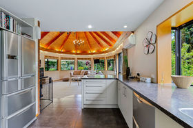 Situated in the desirable northwest, the home and section frontage give no indication what lies beyond. Upon entry you quickly appreciate this property has mammoth proportions and speaks quality at every corner. The current owners ensured this home was future proofed to stand the test of time. A bespoke cathedral timber ceiling, hexagonal picture windows and sky lights makes it obvious that attention to detail was paramount in the build process.