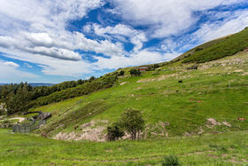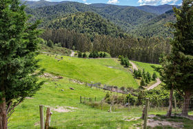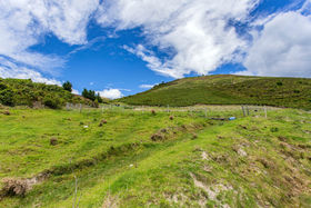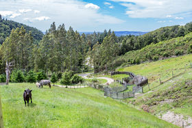 Rolling to steeper hill country with deer handling facilities and cattle yards.