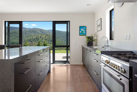 The home has been built for all day sun with an effortless flow from the French doors out to the decking area overlooking the land and to native bush clad hills and the Canterbury Plains.