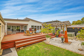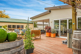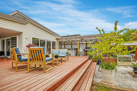 The linear built home has been designed to capture the sun & a haven has been created for indoor/outdoor living. The various sliders only enhance what is on offer. As light & sun were a priority in the build, skylight windows were installed to heighten the effect. The open plan living over-looks the main deck & the back yard. The master bedroom has an ensuite & walk in robe, whereas the 3 other bedrooms all have double wardrobes. The main bathroom is huge & extremely well appointed. A separate laundry with ample storage is a real bonus. Heating is provided by a log fire with wet back, heat transfer, heat pump & up-spec'd insulation, ensuring you will never go cold over the chilly winter months.