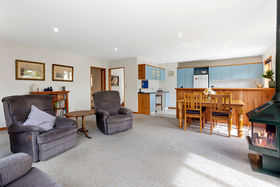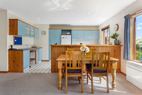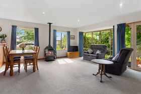 From the entrance you are welcomed into the open plan kitchen, dining and living space - all enjoying vistas over the stunning gardens. This area is serviced by a convenient heat pump and gas fire for year-round comfort. Doors open to an enjoyable patio space, an ideal area to relax and enjoy the amazingly created garden.