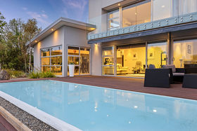 A triumph of light and location, the home turns to the north-west and opens to the scenery, aligned for afternoon sun and ever-present views as terraced grounds direct you down to a jetty stationed at the water's edge.