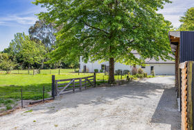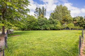 Beyond the home, the grounds unfold in every direction, with sweeping lawns, towering trees, vegetable beds and a fully fenced paddock sitting alongside a newly added utility shed that gives space for tools, hobbies or storage.
